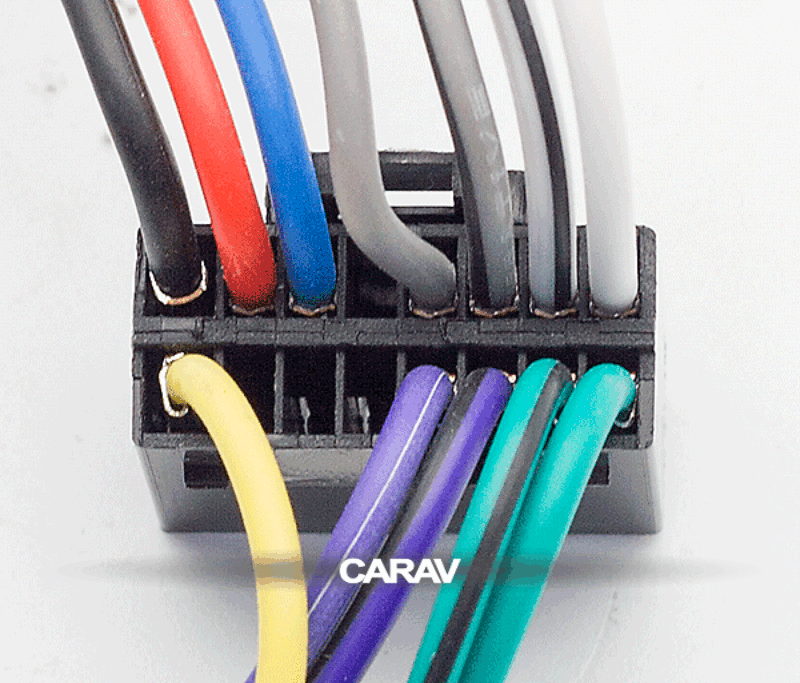16-pin conector (hembra) <---> CARAV <---> ISO (macho) Alimentación y Altavoces