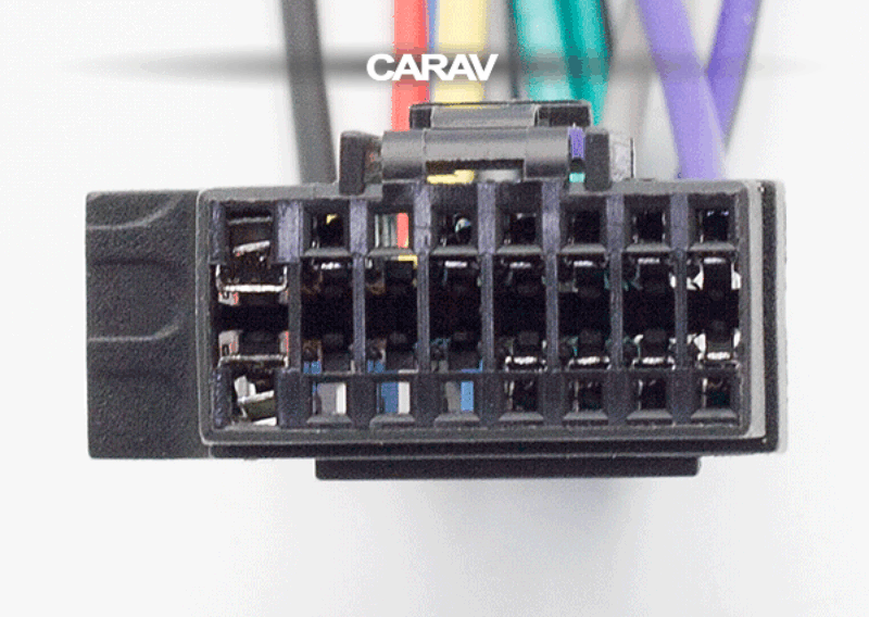 16-pin conector (hembra) <---> CARAV <---> ISO (macho) Alimentación y Altavoces