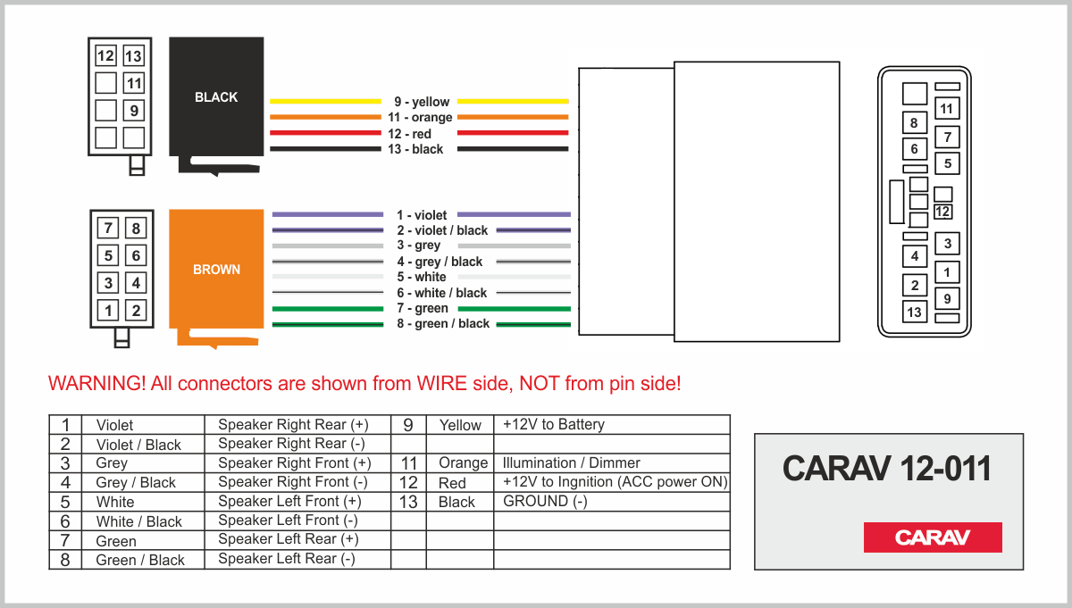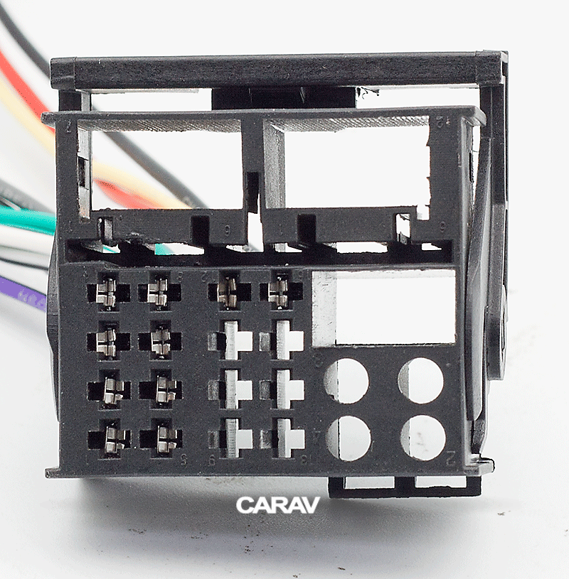 ISO (hembra) <---> CARAV <---> conector OEM (macho)