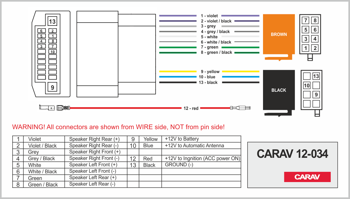 ISO (hembra) <---> CARAV <---> conector OEM (macho)