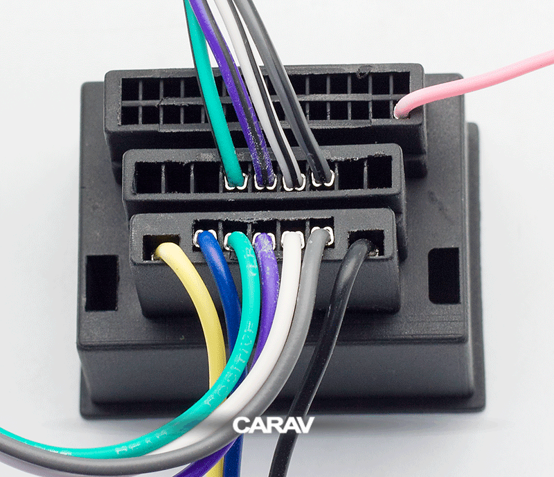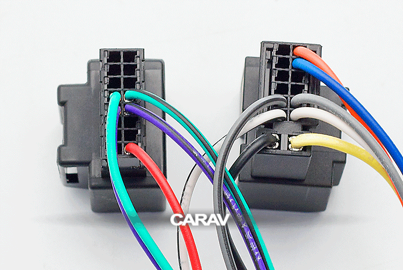ISO (hembra) <---> CARAV <---> conector OEM (macho)