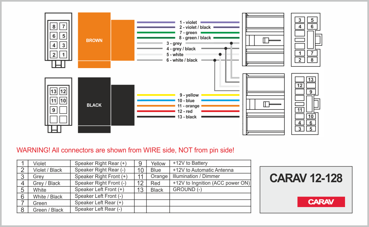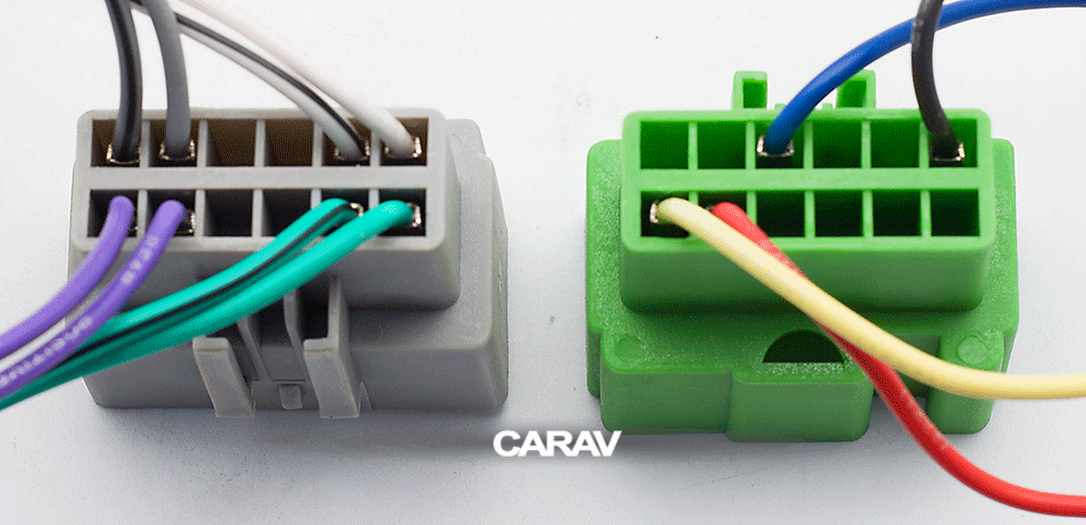 ISO (hembra) <---> CARAV <---> conector OEM (macho)